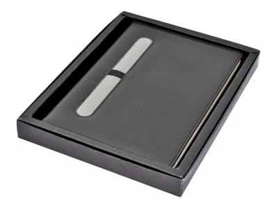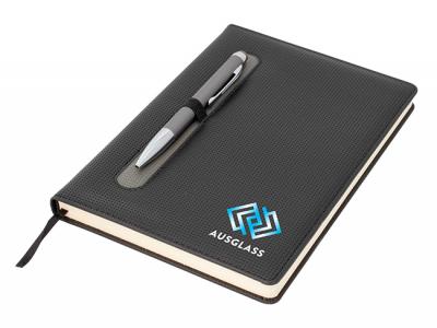 Hugo Executive Textured Notebooks are a contemporary styling and dimpled texture surface combine to make this A5 notebook a standout. Featuring a contrasting pen recess (pen additional) with elastic loop as well as a marker ribbon, Hugo is available in black with grey highlight. Notebook Gift Box is optional extra.