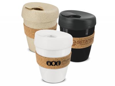 Incorporate branded suber cork band eco coffee cups (350ml) in your next promotional campaign