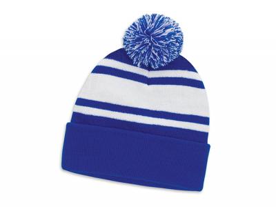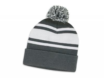 Incorporate branded embroidered stripped pom pom beanies in your next promotional campaign