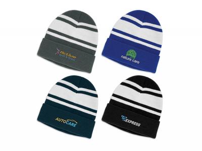 Incorporate branded embroidered stripped beanies in your next promotional campaign