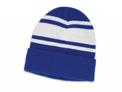 Embroidered Stripped Beanies are a warm knitted acrylic beanie with a roll up cuff, trendy stripes.