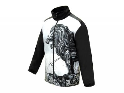 Athlete Sport Track Jackets come with a custom all over Full Colour Print, great for team sports or corporation jackets. These are a high collared zippered jacket that will keep you warm with the microfibre lining. These also make great Hotel staff jackets or golf jackets. These Custom printed jackets suit any sporting, car racing, hotel, corporation, resort or business by giving you total control on the full colour design of the jacket. Stand out!!