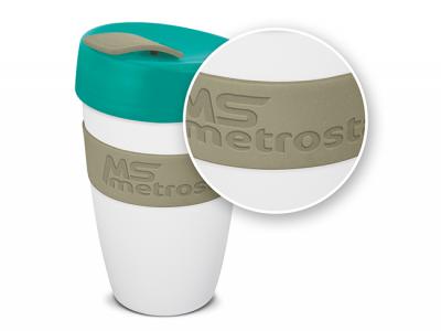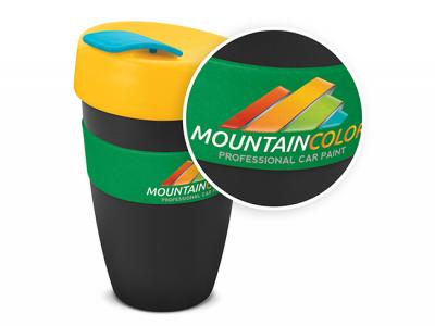 Silkscreen Printing your promotional alvo flip lid reusable coffee cups (480ml):Your promotional alvo flip lid reusable coffee cups (480ml) can be silk screen printed in 1 or more colours. Costs shown include a 1 colour logo print on your custom branded alvo flip lid reusable coffee cups (480ml). We can print more than 1 colour, however it incurs extra costs. We can achieve a perfect PMS colour match for the print.