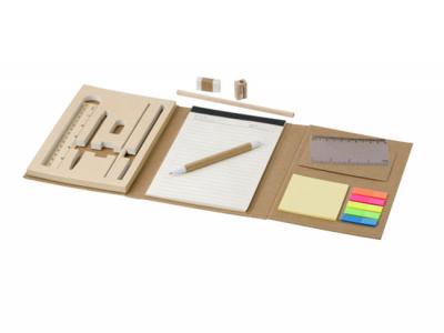 Eco Cardboard Stationary Office Folders are a cardboard writing folder, including: notepad with 40 sheets, bamboo ruler (15 cm), cardboard pen with plastic tip, clip and button (blue ink), two pencils, a pencil sharpener, an eraser, post-its (25 sheets per colour) and an interior pocket. These are a handy school or office item that include all your needs.