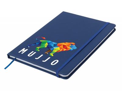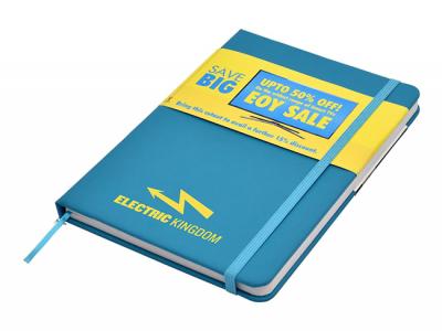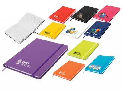 Printed A5 notebooks can be used by everyone as this size is the ideal size for slipping into the briefcase or handbag and to be available whenever needed. Our promotional notebooks are available in 10 vibrant colours and feature an elastic closure and ribbon marker.
