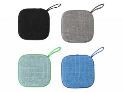Linen Speakers are an ABS wireless speaker with linen front and rubber finish. The Linen Speaker Features: a TF card slot, ports for USB and AUX (3.5 mm), 4 control buttons and a USB charging cable. Battery life: 1,5 hours. The Linen speaker fits nicely into any home or office to blend naturally.