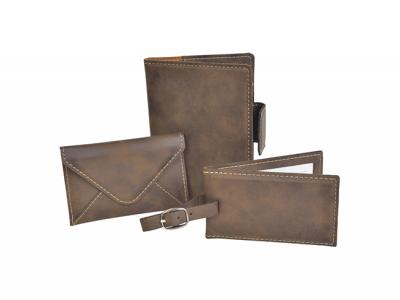 Personalize your leatherette travel gift sets or custom design leather wallets for your marketing campaign.