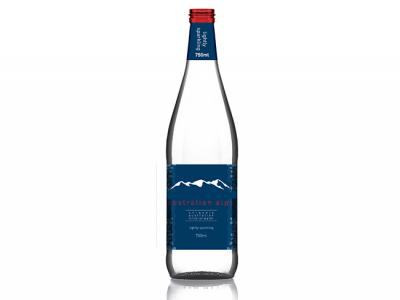Promotional mineral water bottles have your custom label printed, with a 750mL capacity. Prices include 1 colour print label. We offer a premium 750ml glass bottle in both a Lightly Sparkling or Still option. Comes with a Silver or Blue Cap. Red coloured caps available for unbranded stock.