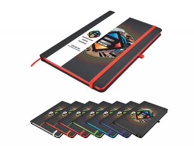 Avent Pu Notebooks A5 are a PU A5 Notebook with matching colour elastic retaining closure, ribbon page maker, pen loop and coloured edged pages. Avent features 80 lined white pages (70GSM) and can be printed in full colour, making it stand out!