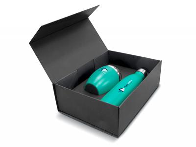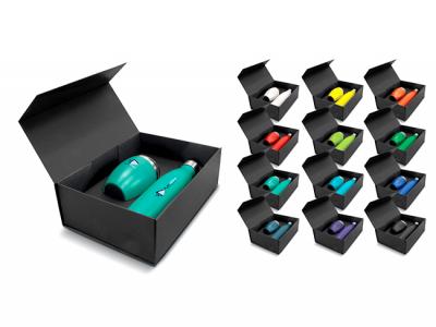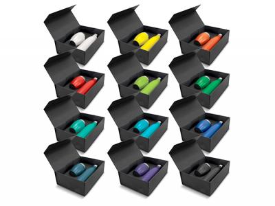 Abby Rhino Vacuum Insulated Gift Set features a stunning double wall, vacuum insulated stainless steel drinkware set which is beautifully presented in a black gift box. The set includes a 500ml Sleek Powder Coated Vacuum Bottle and a Rhino Double Walled Stainless Thermo Cup (300ml) which is also powder coated. The bottles have a secure screw on stainless steel lid and will keep drinks cold for up to 24 hours and hot for up to 12 hours. Rhino has a transparent push on lid and will keep drinks hot for up to three hours.