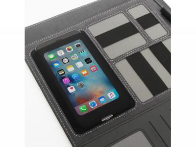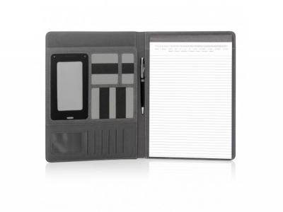 Linen Look Tech Compendiums are beautifully designed with a woven black poly linen fabric, this beautifully designed, A5 sized compendium provides a compact solution for the business man/ woman or student on the move. It includes a mobile phone sleeve (fits most phones) with a touch sensitive contact window, multiple card and accessory holders, pen loop, and A4 notepad.