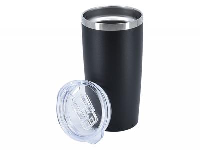 Maxi Double Wall Cups are a 100% BPA free cup that features a powder coated outer (black), and 18/8 double wall vacuum stainless steel construction, including a unique copper lining (designed to keep drinks hot or cold for hours) and clear acrylic lid with ultra glide sliding tab.
