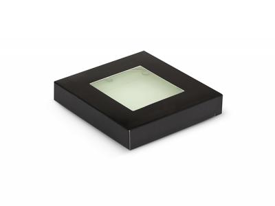 Round Clarity Glass Coasters Sets area a Set of two round glass coasters in an elegant black gift box with a window to show off the brand.