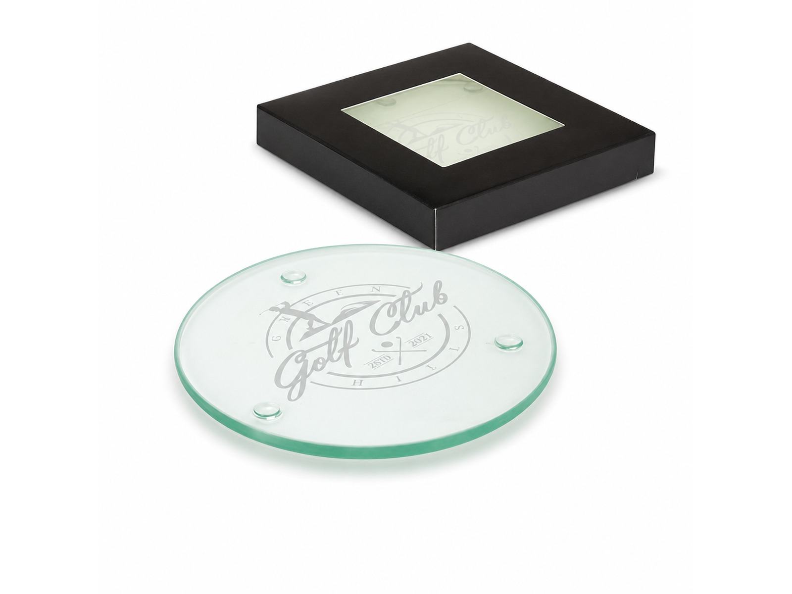 Incorporate branded round clarity glass coaster sets (set of 2) in your next promotional campaign