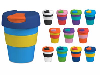 Flip Lid BPA Free Plastic Reusable Cups are a reusable cup that is made from high quality AS BPA Free plastic. A very sturdy and stylish solution to enjoying your everyday cuppa. Available in 11oz/320ml with various coloured bands and flip lid and lids - mix and match options.
