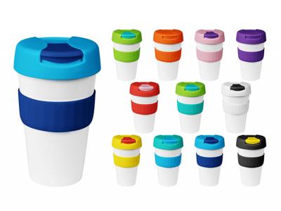 Tokyo Reusable BPA Free Coffee Cups (535ml) are a large reusable coffee cup that will put an end to waste and put sustainability in the palm of your hands. 11 brilliantly coloured lids, flip piece and bands give your brand the pop it needs. Gloss finish cups.
