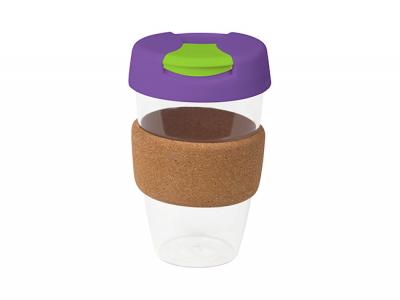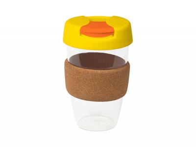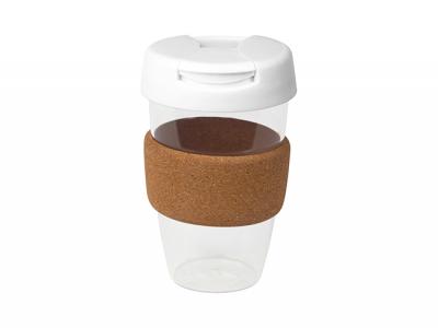 Personalize your flip lid plastic reusable cups with cork band (535ml) or custom design bpa free plastic mugs for your marketing campaign.