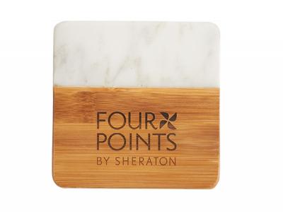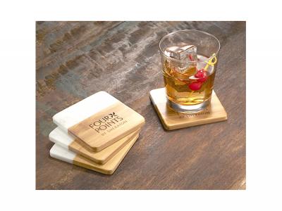Incorporate branded eco marble & bamboo coaster sets (4pcs) in your next promotional campaign