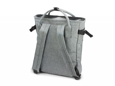 Zipo Commuter Backpack Tote Bags are an extra large tote bag that can also be worn as a backpack. The bag is manufactured from 300D polyester with a two tone heather style finish. Zipo Commuter features a zippered top closure, a front slip pocket with a domed closure, and a zipper to access the main compartment from the back of the bag. The bag has a gusset for increased storage, adjustable side straps and padded shoulder straps and carry handles that are riveted to the bag for added strength. These make a useful grey finished business bag for any corporation.