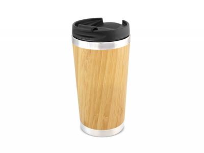 Obi Bamboo Double Walled Cups will make a statement. This custom Cup holds 350ml and is a nature inspired double wall coffee cup which has a genuine bamboo outer wall. It has a stainless steel inner wall and a secure screw on lid with a splashproof flip closure. The custom cup will keep drinks hot or cold for longer and has smart stainless steel trim. It is BPA free and is presented in a black gift box. This product is not dishwasher safe and handwashing is recommended. Bamboo is a natural material which produces unavoidable variances in the grain pattern, colour and branding. This is an Eco version of excellence.