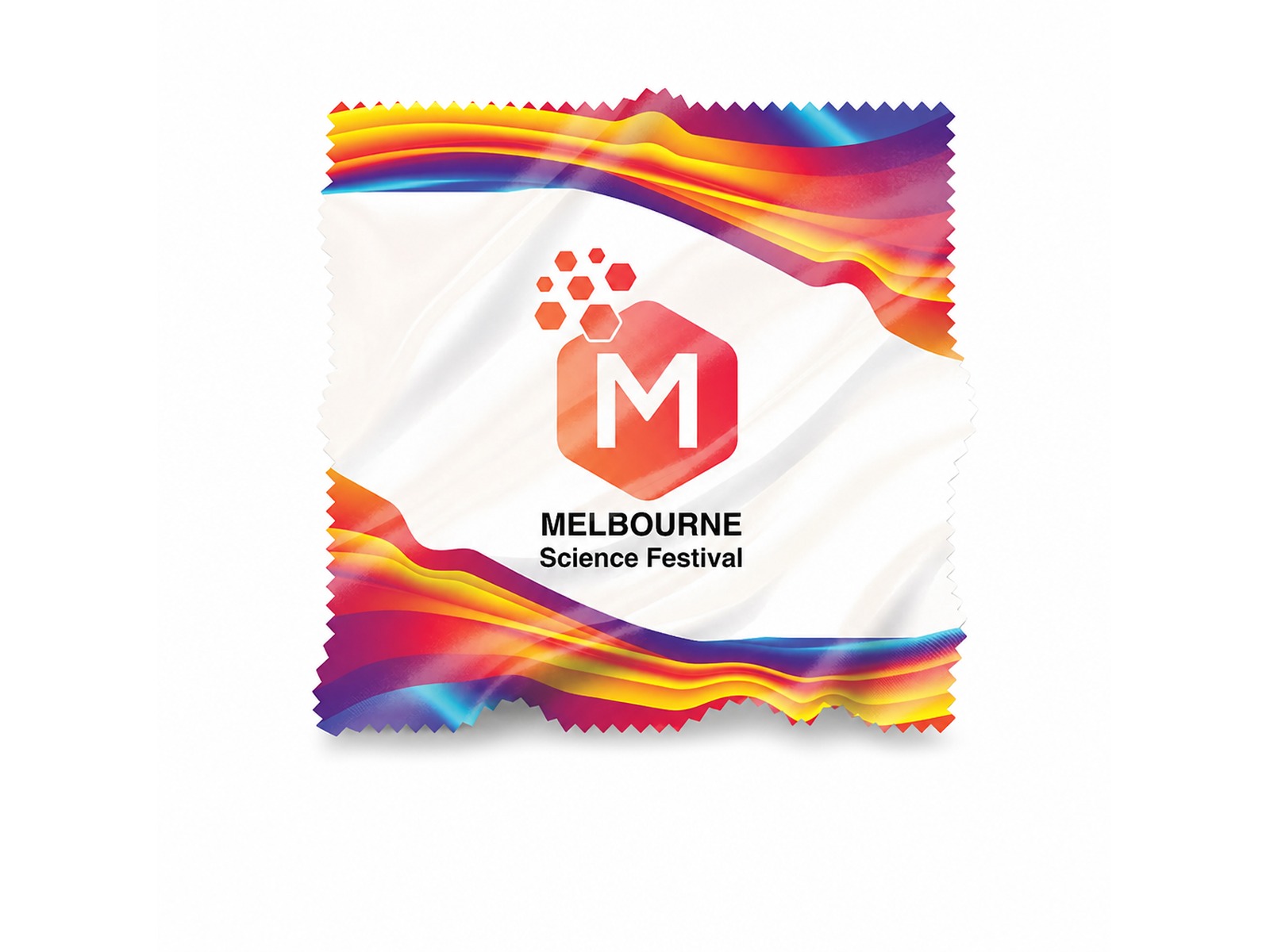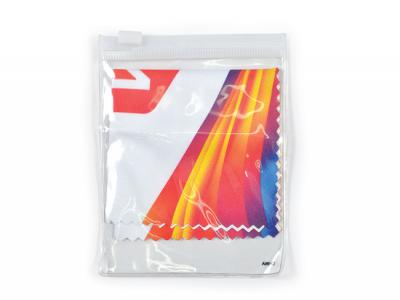 Pricing below includes a full colour print on one side. We can also print onto the 2nd side at extra cost. An optional white/clear zip pouch is also available at extra AU$1.00 per unit. But we can also supply theese cleaning cloths with a custom printed sleeve in full colour at additional AU$3.00 per unit + setup.