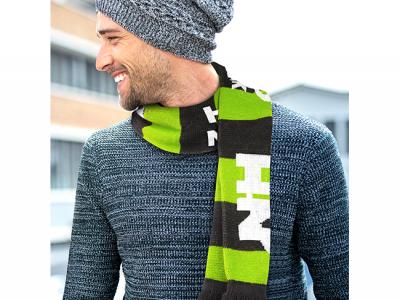 Use the space of the whole scarf as showplace for your brand! These jacquard knitted acrylic custom scarves not only feature tassels, but also come with your artwork placed all-over: This provides a huge branding area to raise brand awareness. The custom scarves can be woven in up to four PMS colours at no extra cost and up to two of these colours can be used to make the tassels. The ideal promotional product for the winter season and the outdoor industry - may it be sport, travel etc.