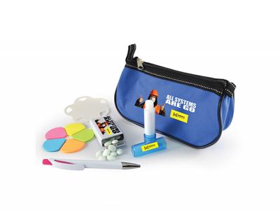 Get your logo printed onto each item of these promotional office sets - Great for staff returning to work or for those who are still in home office. Show them how much you care with these convenient kits which come with a Lip Balm, Sticky Notes, Spearmints and a Pen packed in a handy Pencil Case.