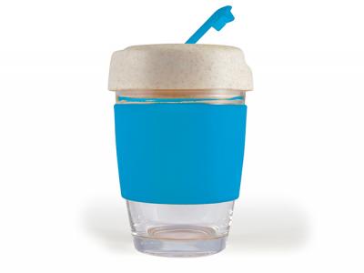 Promotional Eco Flip Lid Glass Coffee Cups With Silicone Bands (320ml)