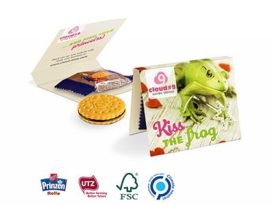 Print your logo onto these custom printed promotion cards with prinzen rolle mini biscuit (7.5g) or one of our other innovative confectionery cards and use them in your next marketing campaign as a unique giveaway item.