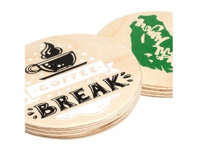 Personalize your printed chunky plywood coasters - round (9mm) or custom design sustainable promotional products for your marketing campaign.