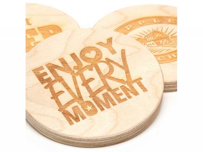 Personalize your engraved chunky plywood coasters - round (9mm) or custom design bbq grilling accessories for your marketing campaign.