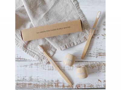 Incorporate branded bamboo toothbrushes with base holder in your next promotional campaign