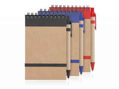Incorporate branded eco spiral recycled paper notepad and pen sets (small) in your next promotional campaign
