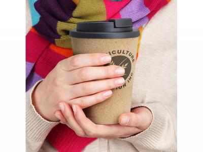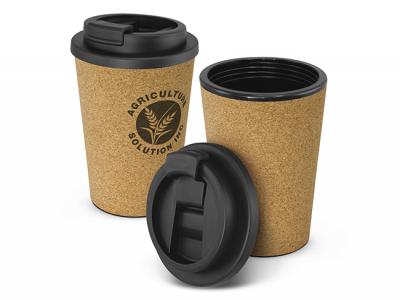 These eco-inspired reusable double wall coffee cups feature a unique soft-touch natural cork outer coating that insulates the travel mug and will keep drinks hot for longer. These custom travel mugs are manufactured from polypropylene which is shatterproof, odour-resistant as well as BPA-free.