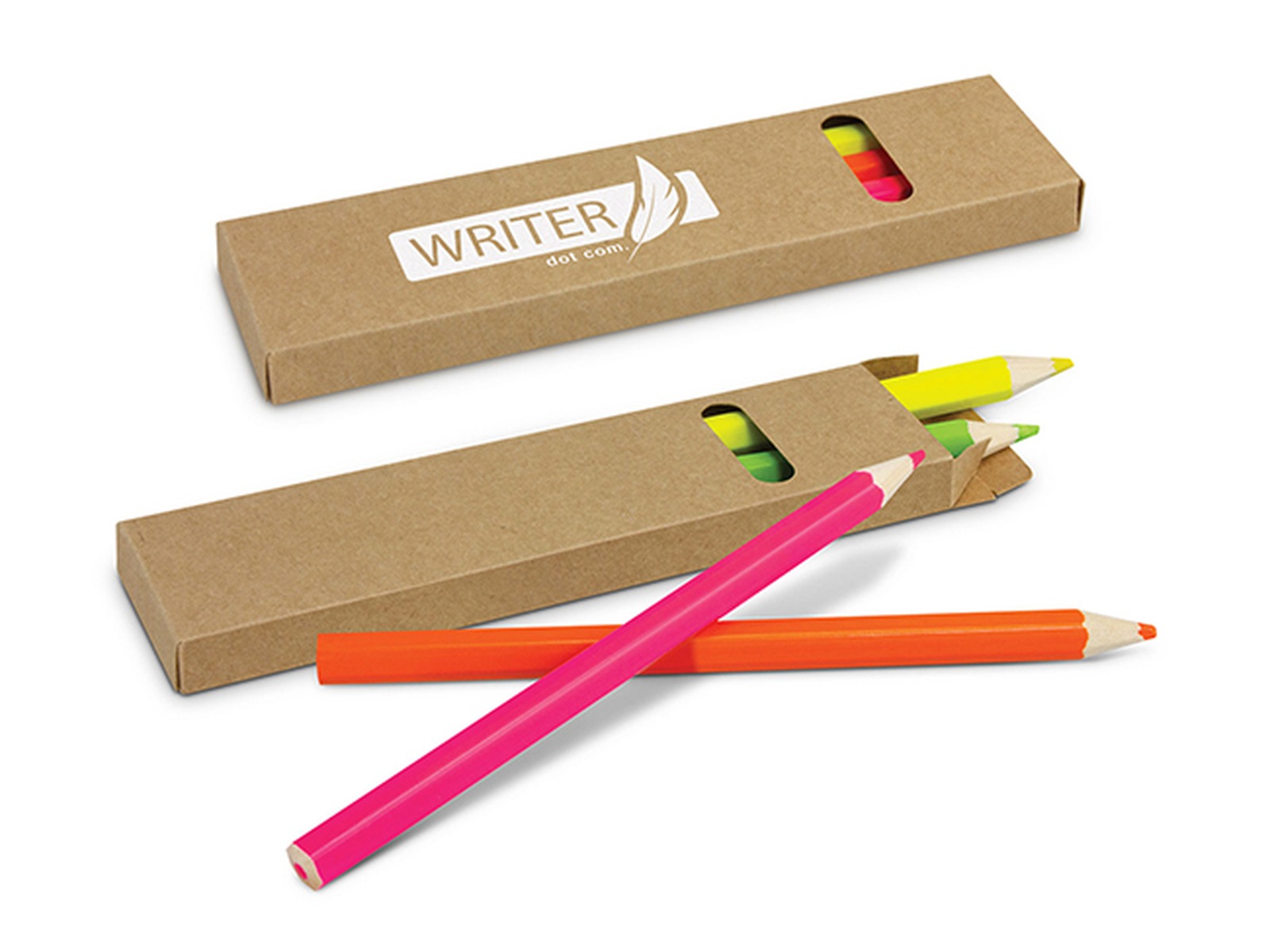 Personalize your jumbo neon highlighter pencil sets (4pcs) or custom design colouring sets for your marketing campaign.