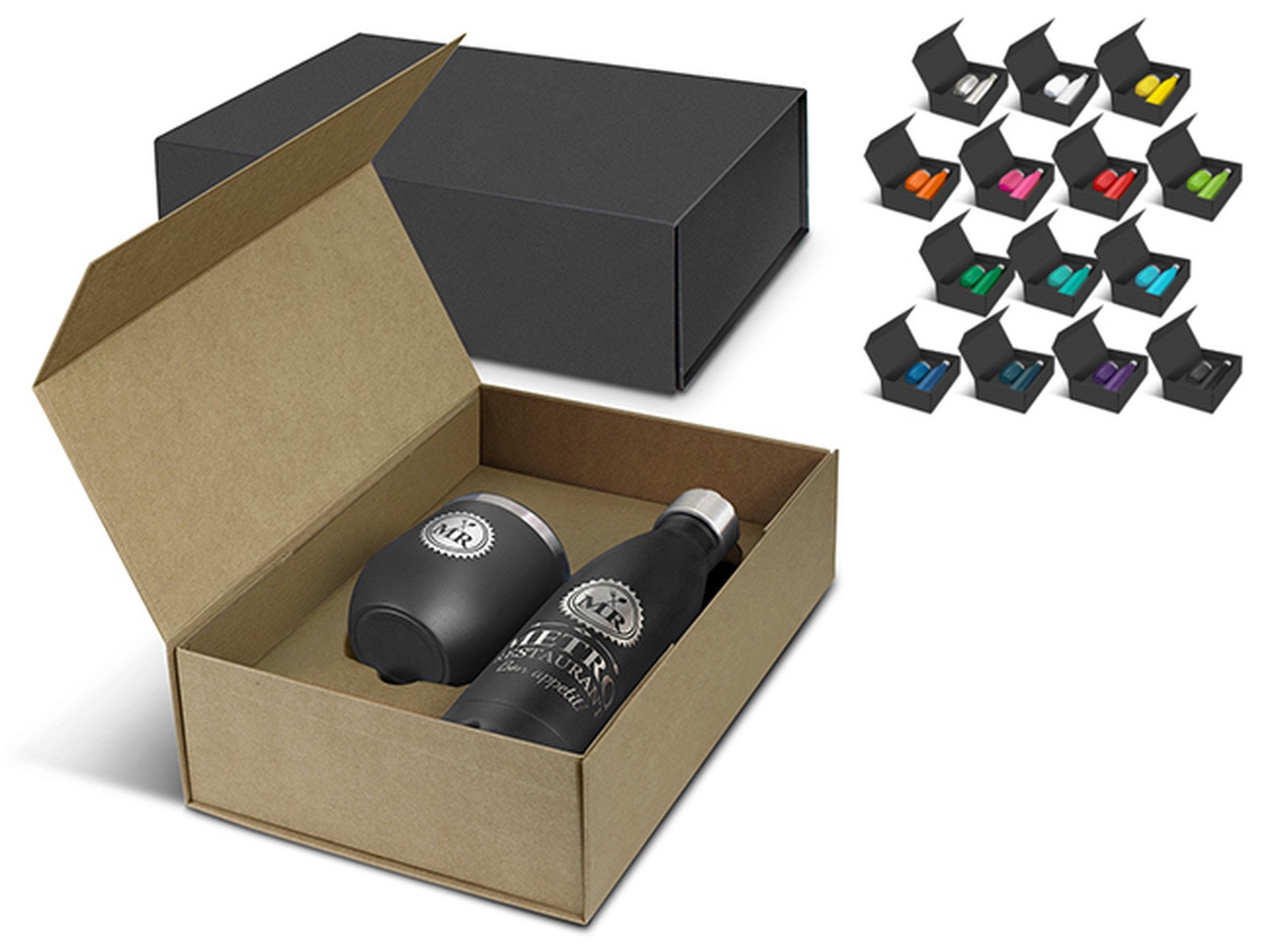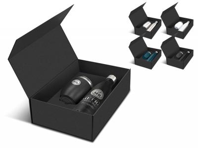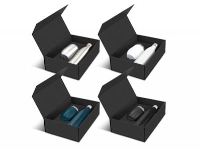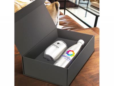 Staff gifts are a tangible way to recognize and appreciate your employees' hard work, dedication, and contributions. When employees feel valued, they are more engaged and motivated. Our Custom Staff Sets feature a stunning double wall, vacuum insulated stainless steel drinkware set which is beautifully presented in a black gift box. The set includes a 500ml Powder Coated Vacuum Bottle as well as an Odic Stainless Vacuum Cup (300ml) which is also powder coated. Our Alhambra bottle has a secure screw on stainless steel lid and will keep drinks cold for up to 24 hours and hot for up to 12 hours. The Odic cup has a transparent push on lid and will keep drinks hot for up to three hours. Both items are BPA free and laser engrave to a natural etch - except for the silver bottle and cup, which do not have a powder coated finish. These products are not dishwasher safe and handwashing is recommended.