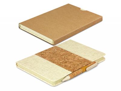 Personalize your natural cork & heathered cotton notebook & pen sets (a5) or custom design notepads with pen for your marketing campaign.