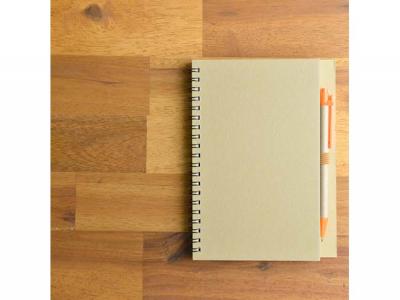 Personalize your unbleached eco spiral cardboard notebooks with pens or custom design notepads with pen for your marketing campaign.