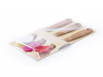 Made of bamboo wood and high heat resistance silicone, these 3 pieces kitchen sets can be branded with your very own artwork. They will then be supplied in an individual bag with a die-cut cardboard reinforcement.