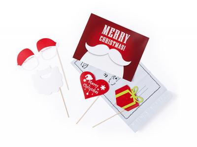 With these Christmas selfie sets, the fun on every Xmas party is guaranteed. 4 cheerful Christmas accessories (beard, gift, heart and Santa Claus glasses) made from high grammage paper with a wooden handle will come delivered in an envelope together with a christmas card which will be customised with your logo.