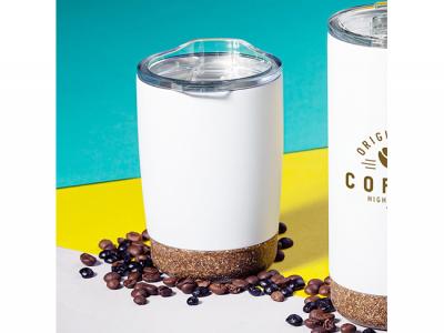 Incorporate branded double walled stainless steel cups with cork base (380ml) in your next promotional campaign