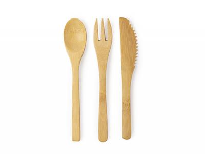 These custom printed eco cutlery sets are an environmentally friendly wooden cutlery set made of bamboo which is presented in a cotton drawstring bag. The set includes a knife, s fork and a spoon. This cutlery set is an environmentally conscious alternative to single use plastic cutlery and is a great way to send a positive message. Bamboo is a natural material which produces unavoidable variances in the grain pattern, colour and branding.
