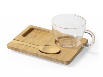 Incorporate branded bamboo serving board and glass mug sets (180ml) in your next promotional campaign