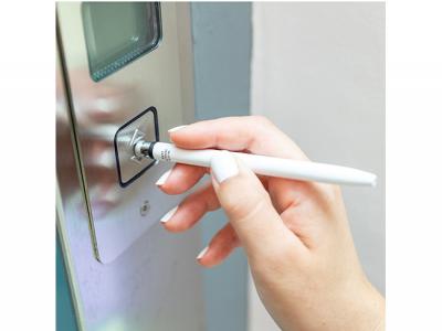 These custom printed antibacterial treated pens feature a twist mechanism and a grey colored stylus pointer to avoid direct skin contact. They come with a smooth finish and blue ink refill.