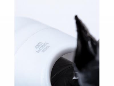 These antibacterial treated waste or poo bag dispensers feature a solid white finish and the attached carabiner hook makes it easy to fix these utensils to any bag or pants so that the bags are on hand when needed. 15 biodegradable bags are included in delivery.