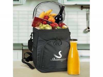 These custom branded 18L cooler bags feature a robust design and excellent functionality: They are manufactured from a stunning combination of patterned 420D ripstop polyester and 600D polyester. The main compartment has thick PE foam insulation encased in a waterproof PEVA inner liner. These sophisticated backpacks also come with adjustable padded shoulder straps, a removable shoulder sling, a padded carry handle, two mesh side pockets and a large zippered front pocket.