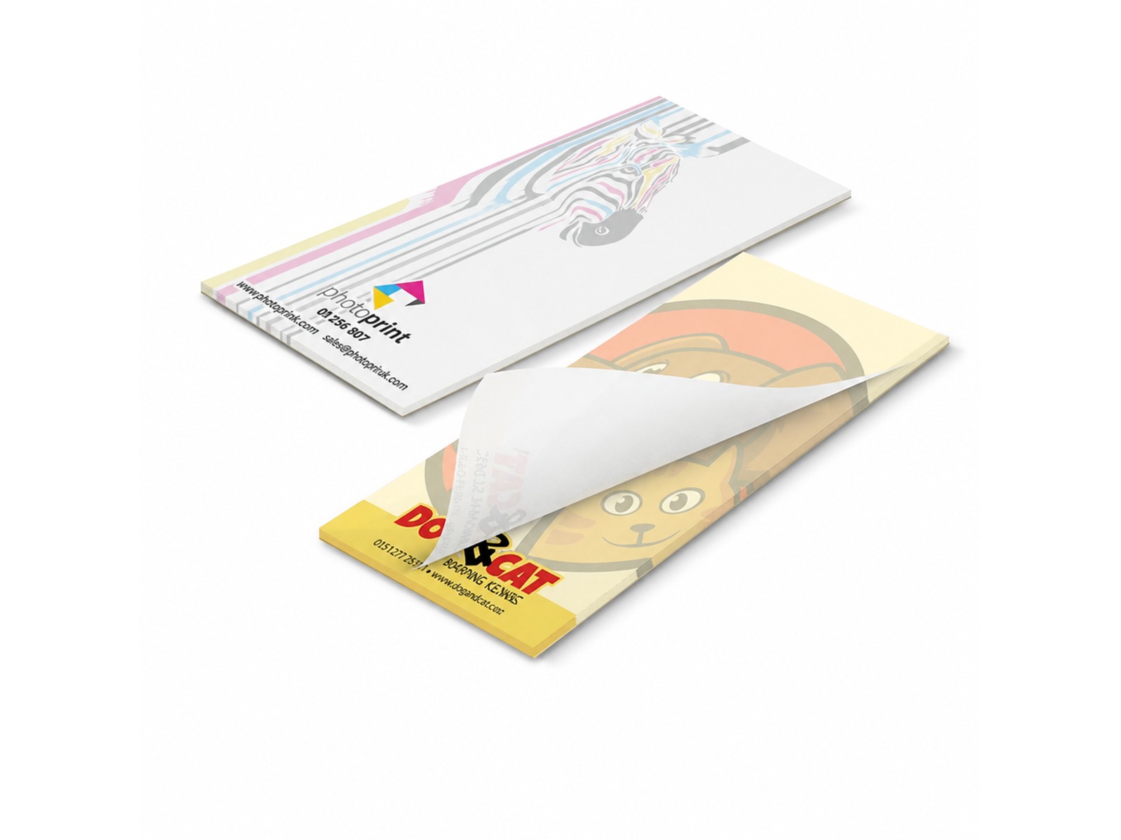 These very affordable 90mm x 160mm sized note pads come with 25 leaves of 70gsm paper which will be branded in edge-to-edge stunning full colour. These promotional note pads are padded at the top and have an unbleached cardboard back.