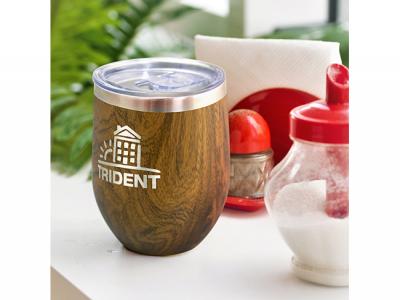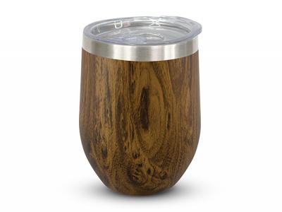 These stylish double wall, vacuum insulated stainless steel coffee cups feature a timeless curved design and a stunning imitation woodgrain finish. They keep drinks hot or cold for hours and have a transparent push on lid with a sliding closure.