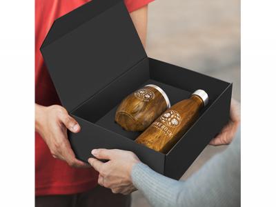 These superb double wall, vacuum insulated stainless steel drinkware sets can be branded with your company's logo and will be beautifully presented in a black gift box. They include our Maple Double Walled Insulated Stainless Bottles (500ml) as well as our Maple Double Walled Insulated Vacuum Cups (300ml) which both have a deluxe wood grain finish.