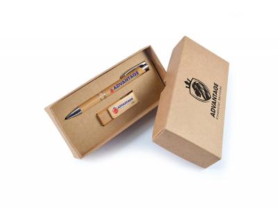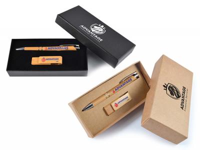 Your artwork will be printed or engraved onto these environmentally friendly bamboo ballpoint pens (Push Button Mechanism; Writing distance: 2.1 kilometres, TC roller ball, Nero pigment ink) as well as onto the 4GB bamboo flash drives (USB 2.0 chips; Will record and play HD & Full HD video from 720p to 1080p/1080i). Furthermore the gift box itself can also be branded with your company's details and/or message.